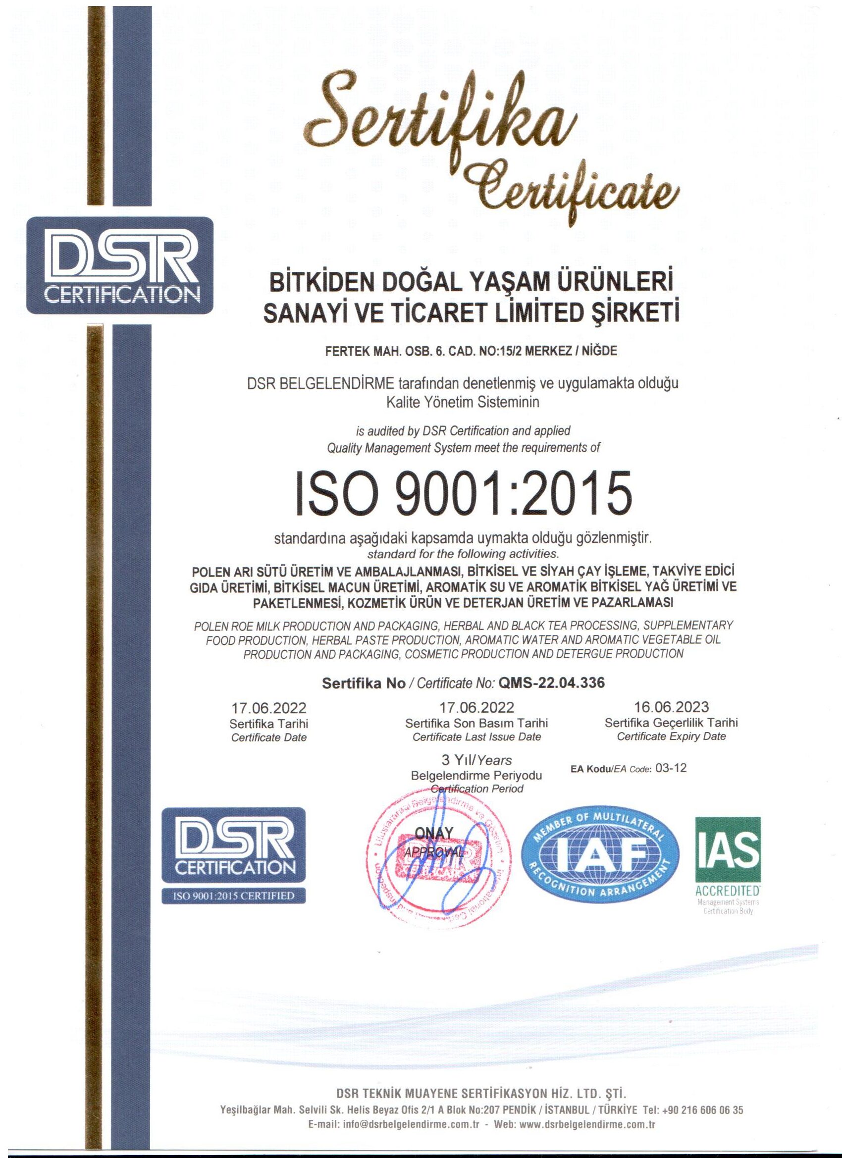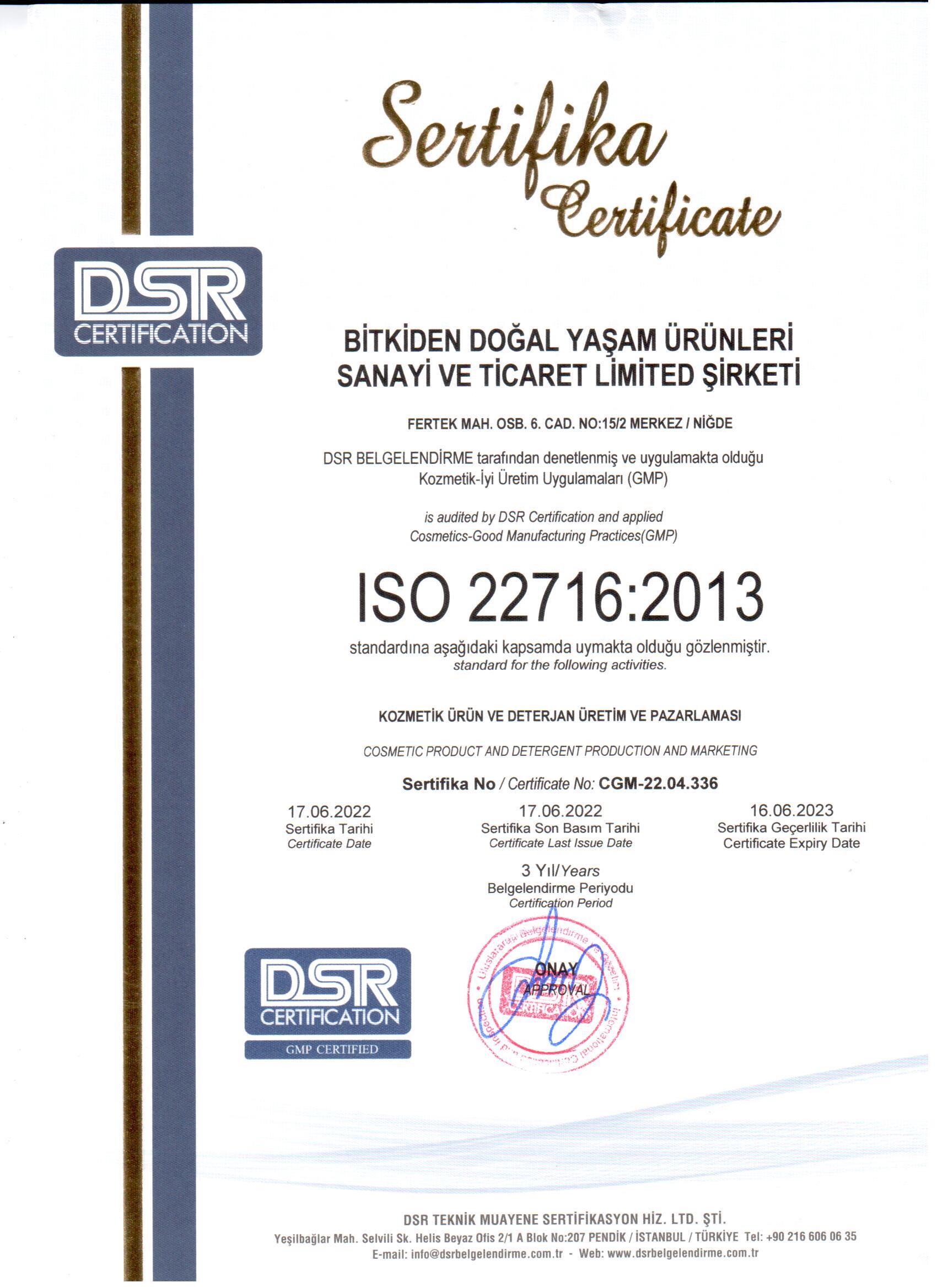 Üretim süreçlerimizdeki şeffaflık, kalite ve güven ilkelerimizi her zaman ön planda tutuyoruz. Bu değerleri somut bir şekilde ortaya koymak adına sahip olduğumuz sertifikaları sizlerle paylaşıyor; tüm doğal, bitkisel ürünlerimizi belirlenmiş uluslararası standartlar çerçevesinde ürettiğimizi gösteriyoruz. Aşağıda bulacağınız belgeler, verdiğimiz sözlerin ve kurduğumuz güven temelli ilişkinin bir kanıtı niteliğindedir.